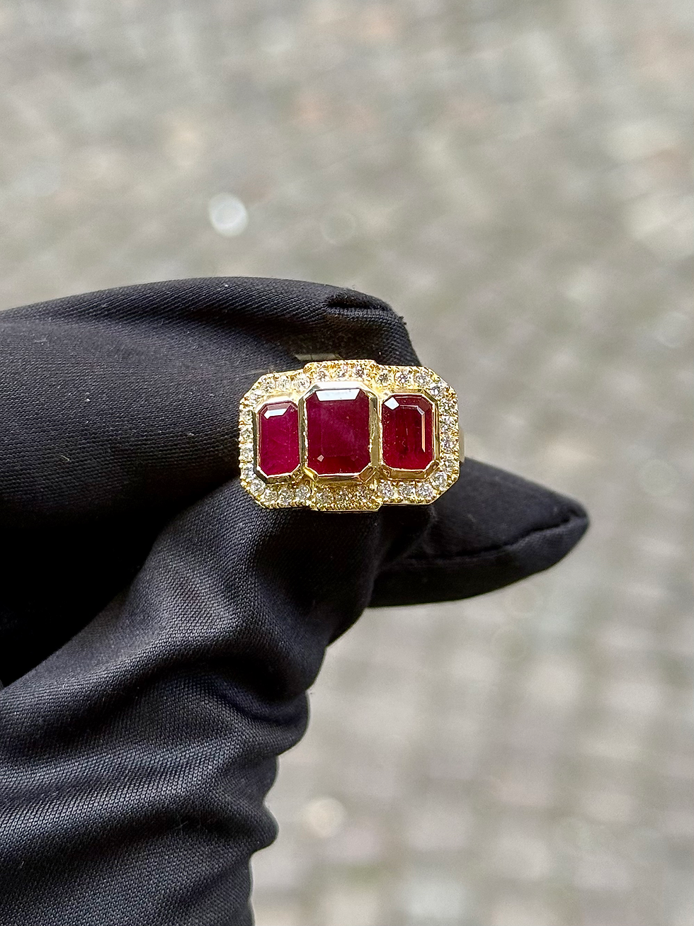 Anello con rubino centrale da 1.80 ct e diamanti per 1.08 ct.